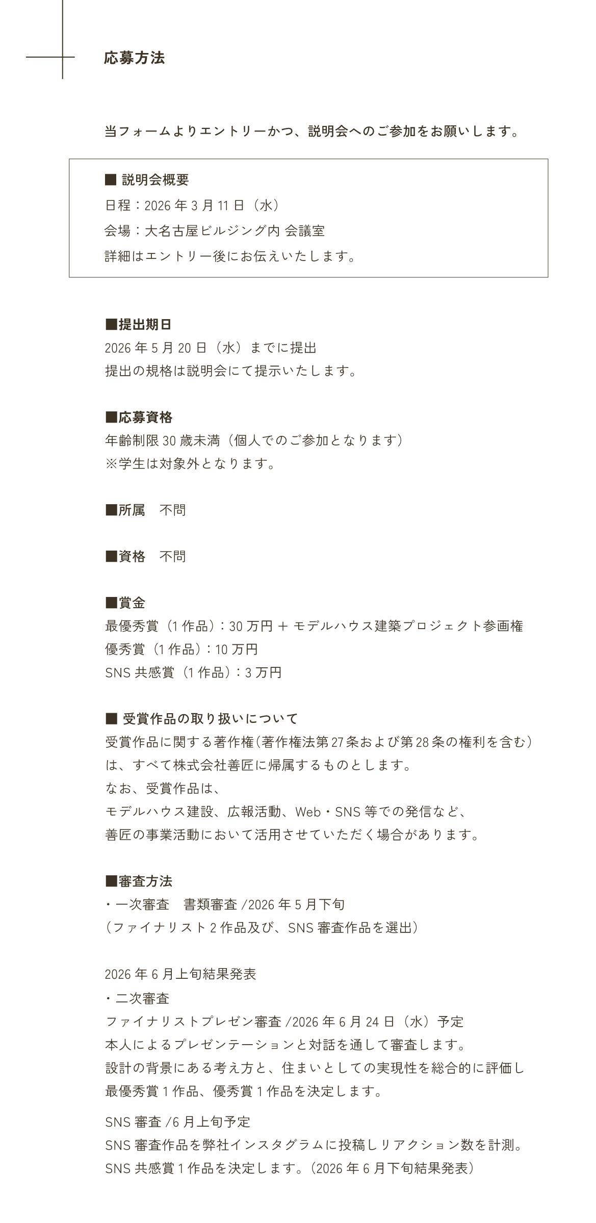 2026年3月11日 弊社名古屋OFFICEでの説明会に参加いただくことが条件となります